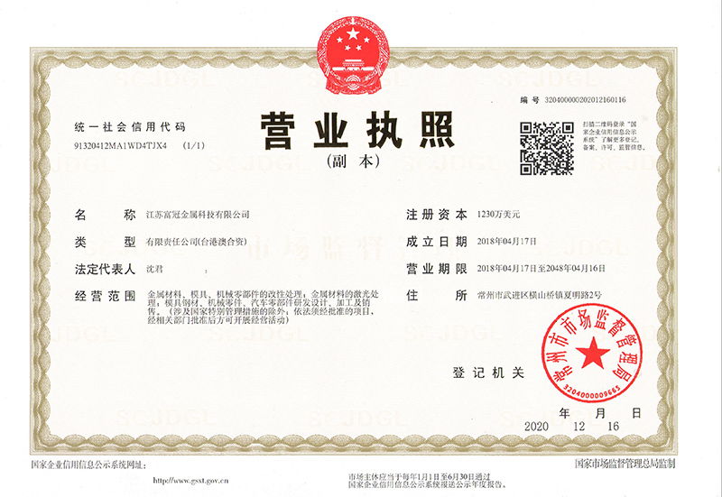 江蘇富冠金屬科技有限公司(以下簡(jiǎn)稱:“公司”)成立于2018年4月,隸屬于鑫昌泰集團(tuán),是常州市經(jīng)開(kāi)區(qū)招商引資的重點(diǎn)外資企業(yè),注冊(cè)資本1230萬(wàn)美元,座落于常州市經(jīng)開(kāi)區(qū)橫山橋智能裝備產(chǎn)業(yè)園,占地面積22762.8平方米,員工總數(shù)100人。公司主要經(jīng)營(yíng):金屬材料、模具、機(jī)械零部件的改性處理;金屬材料的激光處理;模具鋼材、機(jī)械零件、汽車(chē)零部件研發(fā)設(shè)計(jì)、加工及銷(xiāo)售。并具有真空淬火、普通淬火、調(diào)質(zhì)、去應(yīng)力回......